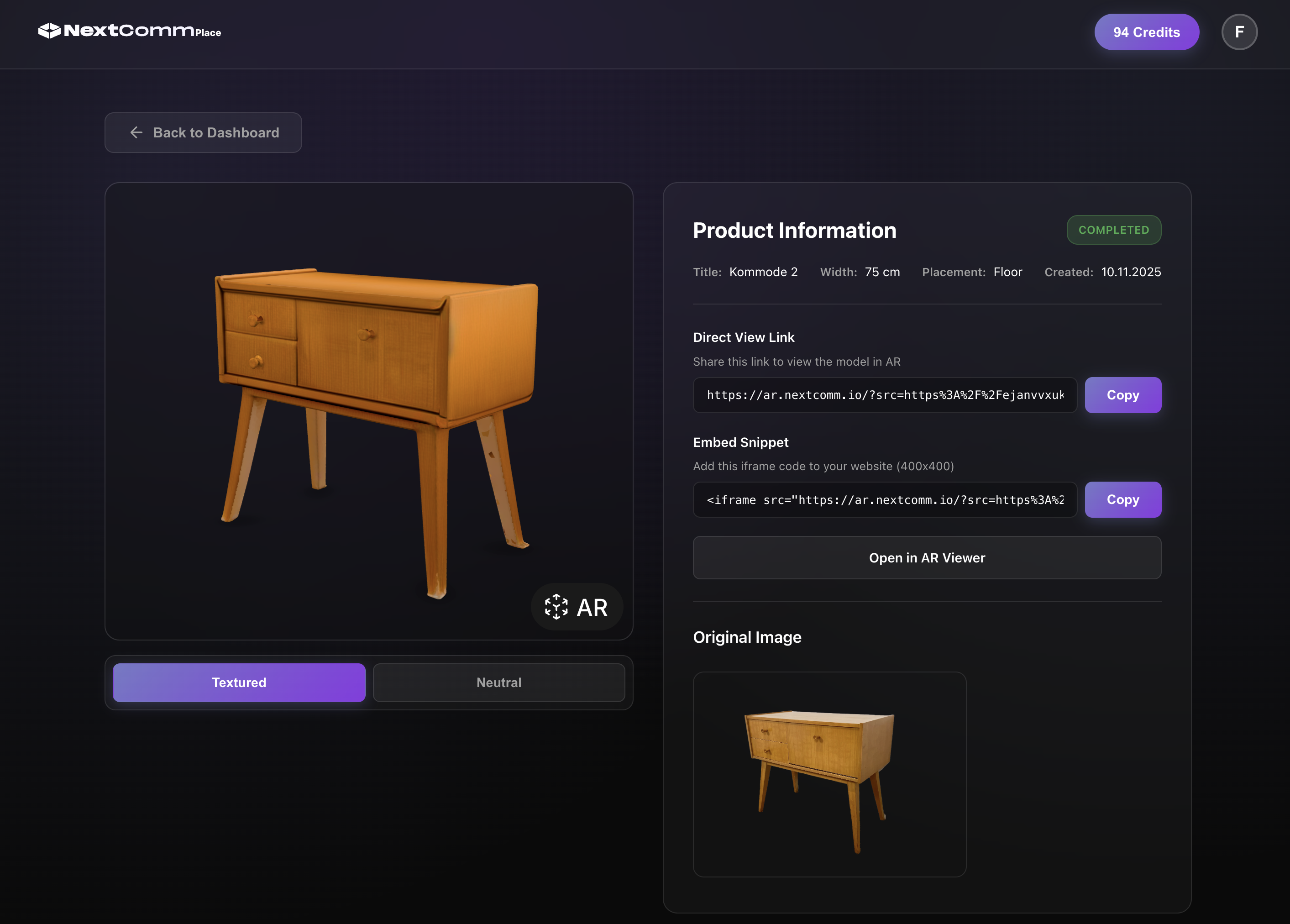 In today’s digital marketplace, simply showing static 2-D images no longer cuts it. Shoppers increasingly expect interactive, immersive experiences — they want to rotate, zoom, view in-room, and feel confident about their purchase. That’s where NextComm Place comes in: a browser-based platform that transforms product images (or videos) into full 3D models and enables Augmented Reality viewing, all without the friction of app-downloads or heavy integrations.